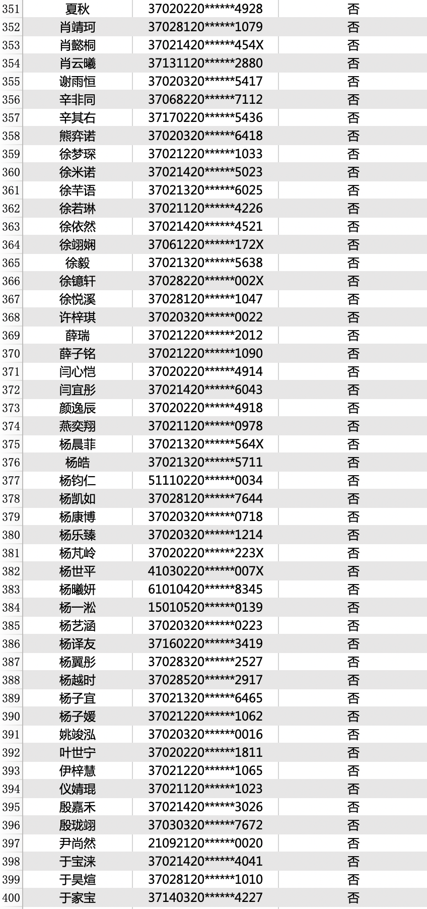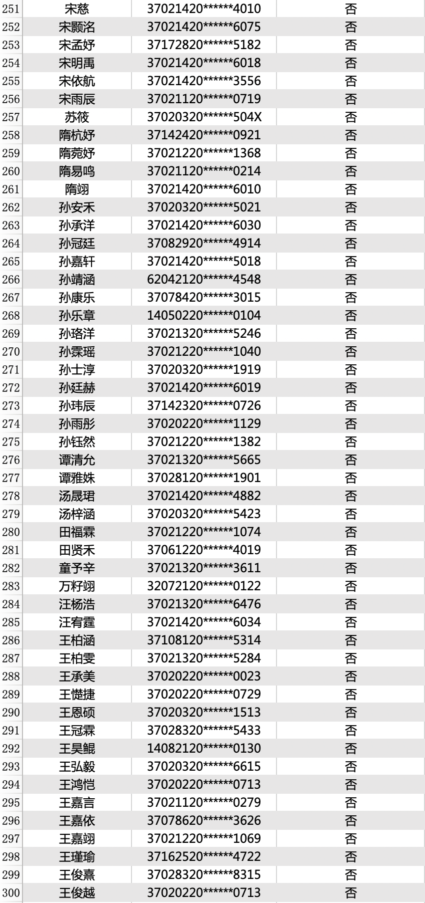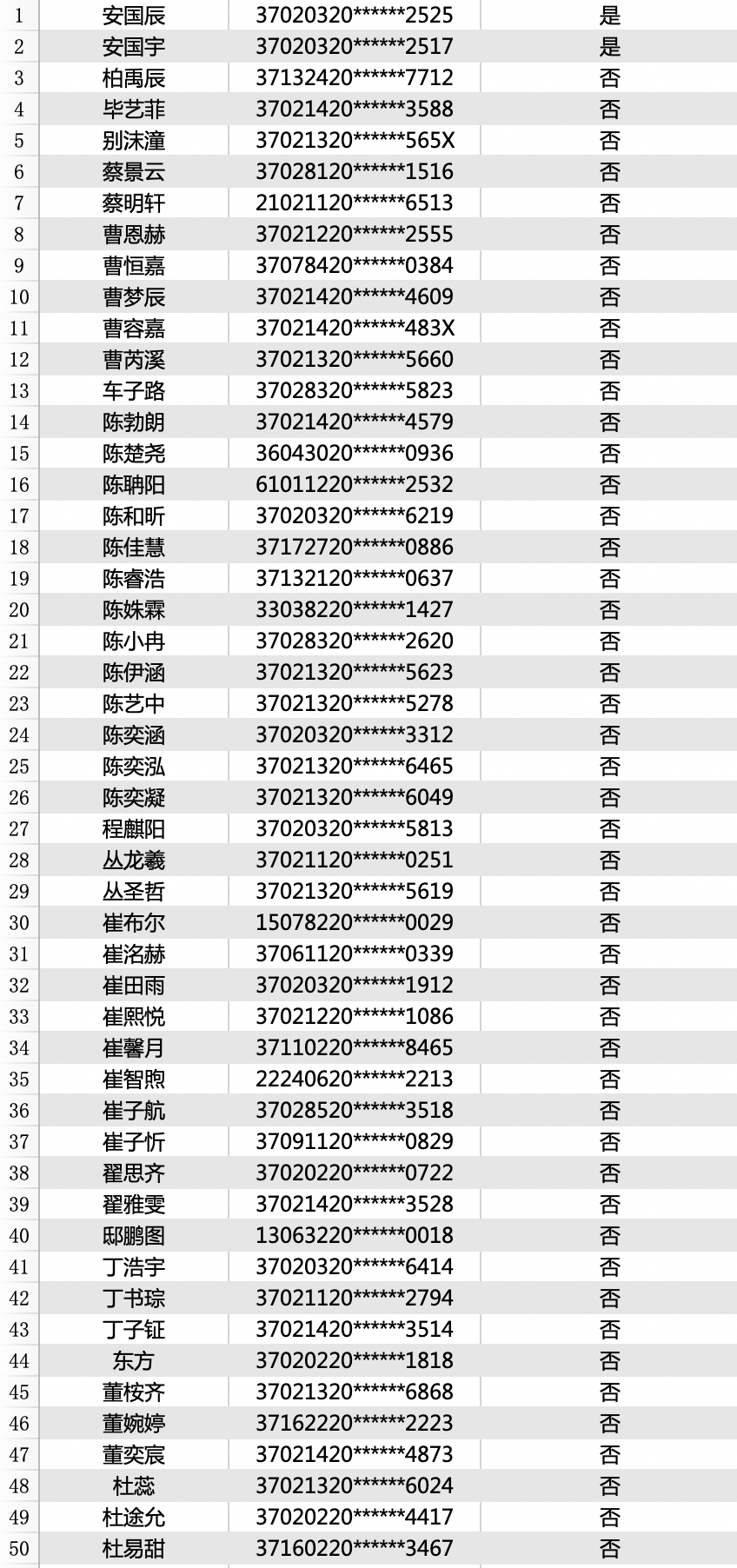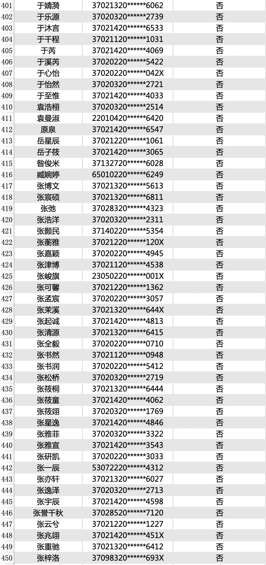 2、以上公示按照学生姓名拼音排序,与报名序号无关。