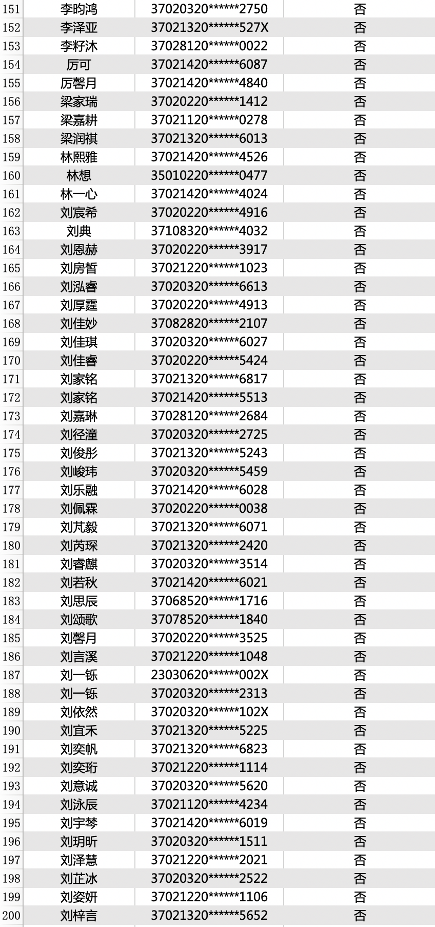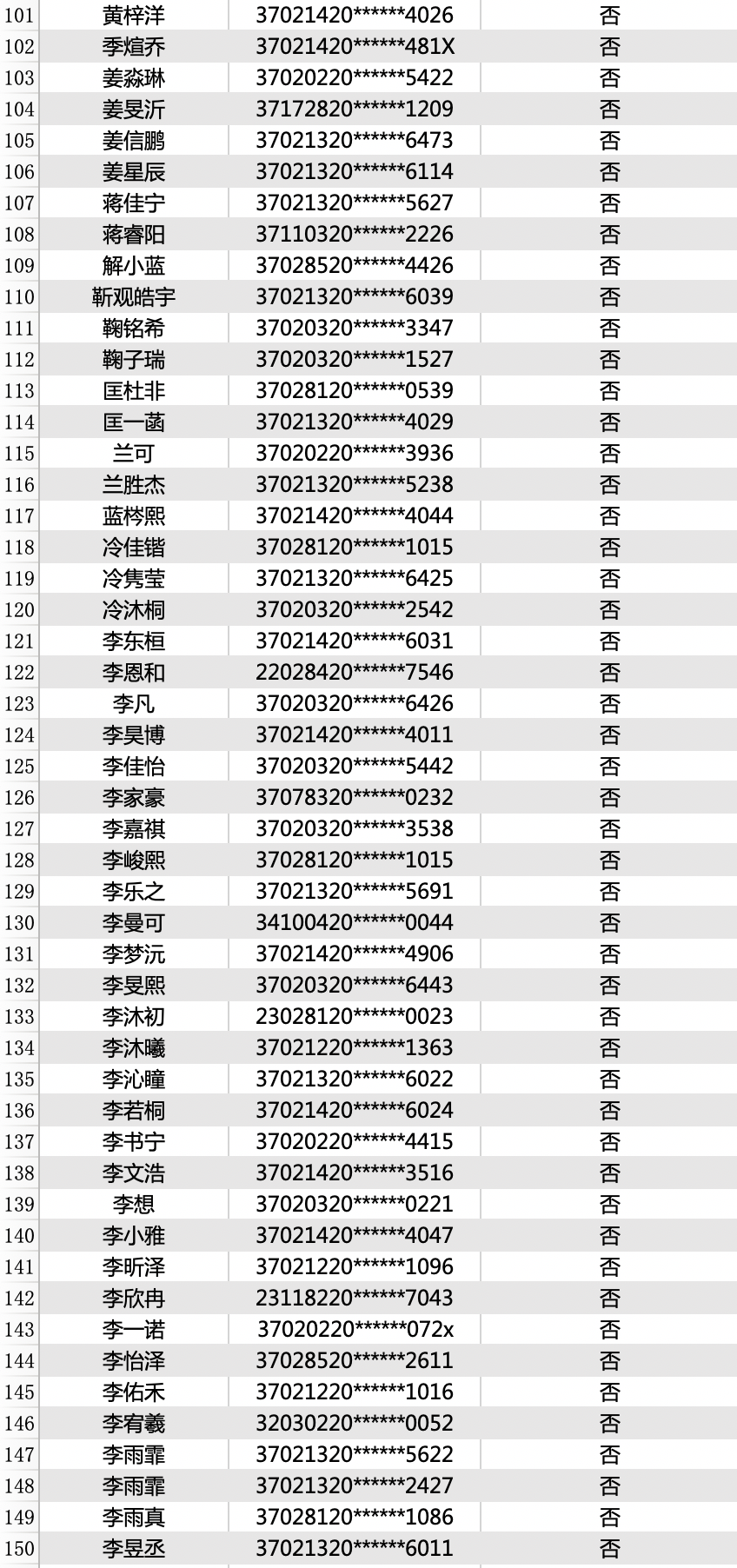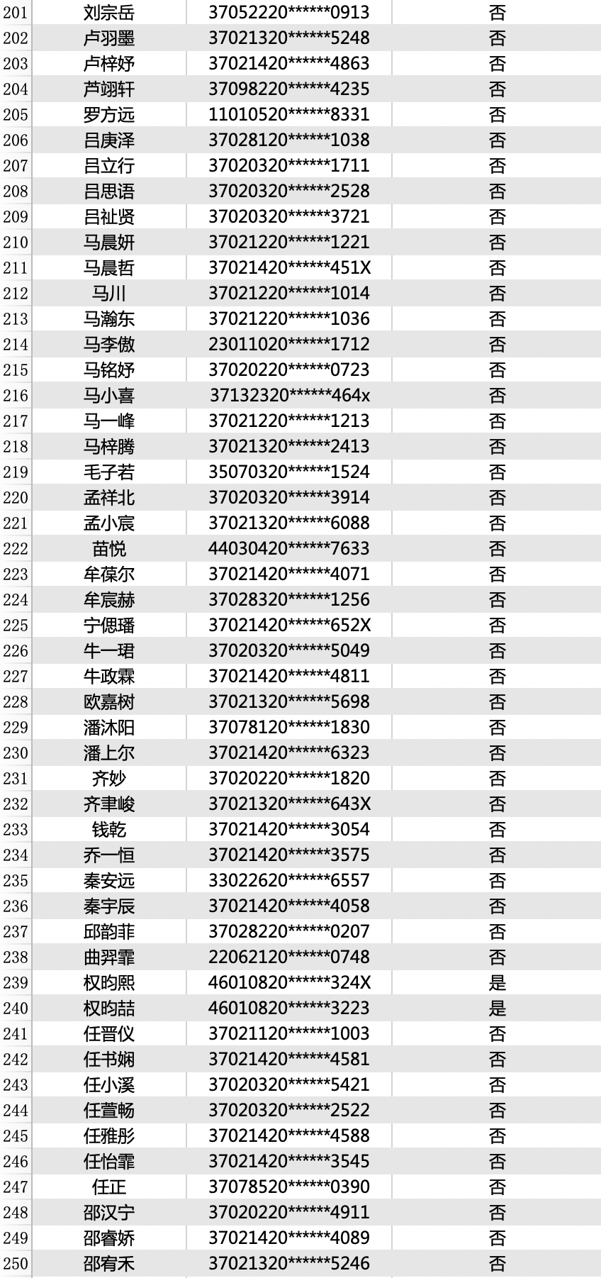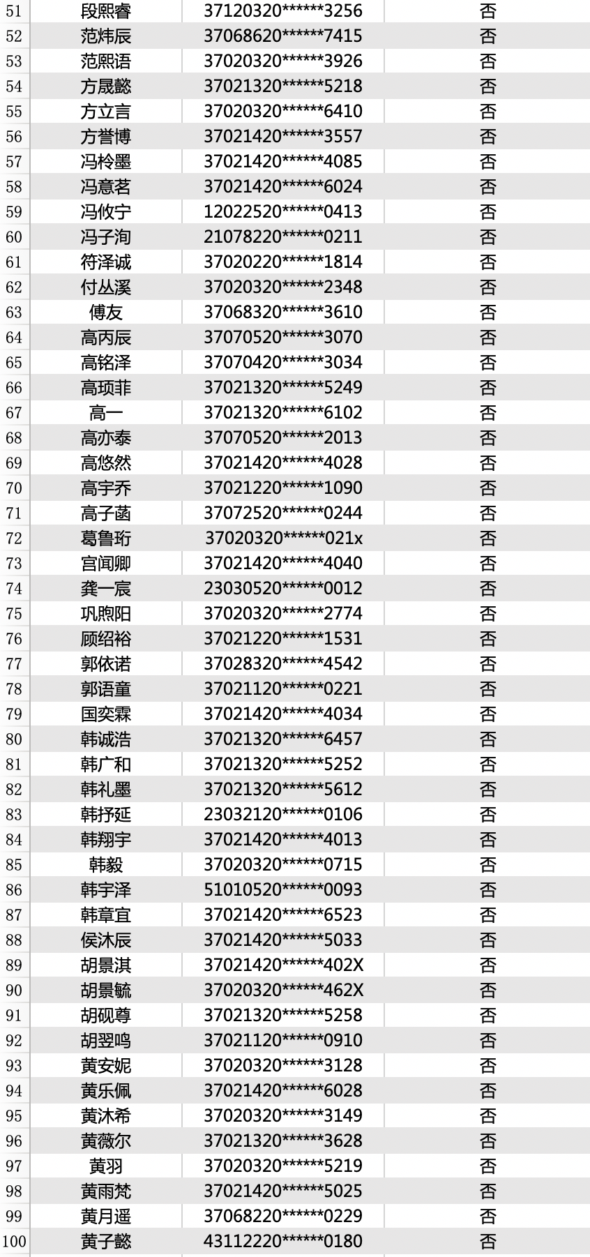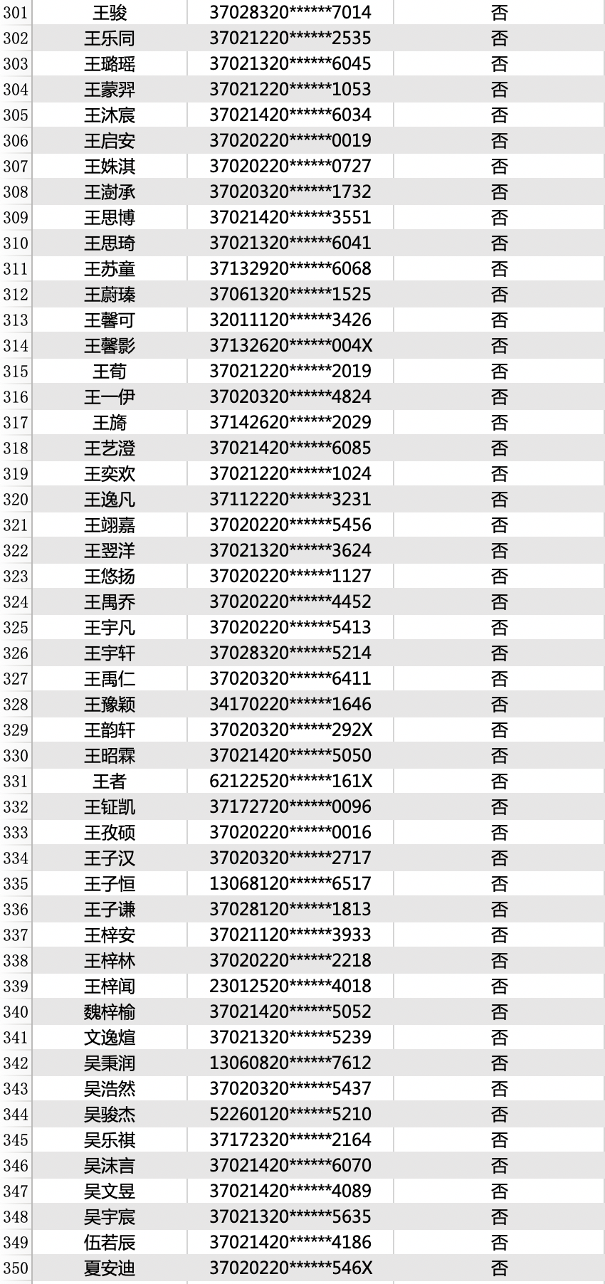 2、以上公示按照学生姓名拼音排序,与报名序号无关。