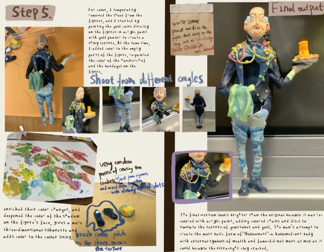 选择A-Level课程像一场精心策划的冒险。在Alevel课程体系当中,高中阶段艺术生一般只需要修三门课程就足够,我修了艺术、数学和经济。三门课程中,艺术自然是我付出心血最多的学科。从选题到调研,从草稿到成品,每一本厚重的素描本都记录着无数深夜的灵光与困顿。我曾痴迷于毛姆笔下的角色,用夸张的线条与几何形变赋予人物灵魂;也曾颠覆童话中的公主,将她们从城堡的桎梏中解放,以立体的剧场演绎新的叙事。艺术课教会我的,不仅是技法,更是一种“创作者思维”——在多元审美中游走,在批判与自省中重塑自我。