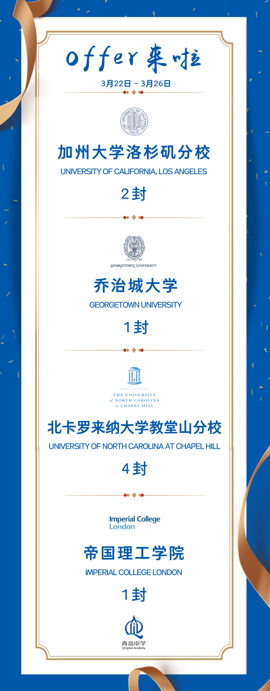 每一份录取通知书都是同学们努力的见证,更是学校教育理念和教学成果的有力体现。2025届录取榜单持续更新中,我们期待更多优秀青中毕业生乘风破浪,登上世界顶级学府的舞台,向世界展现中国新时代青年的风采与力量;我们也期待同样优秀的你加入青中,同我们一起用教育创造更加美好的未来!