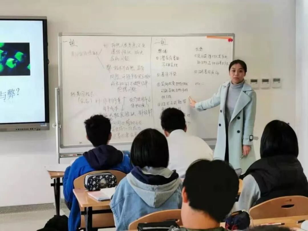 作为高考和竞赛课程兼顾的生物老师,她总是将学生放在心上,在思考中把厚厚的课本变成了薄薄的知识,精心组织课堂,注重学生科学思维和探究能力的培养。在日常的工作中,她勤奋敬业,面对多种课程和各种事务,总能保持活力满满,有条不紊去完成。还记得在上一学期,她几乎没有休过一个周末,钻研竞赛课程、外出培训、参加会议、处理各种学校事务,在暑假期间还带队学生进行了生物竞赛的集训,可谓是“工作狂人”。当我感慨“师姐,你太辛苦了,会不会觉得很累”时,她却面带微笑的回答“还好,并不觉得累,反而在看竞赛教材时,常因为了解了一些新知识而感到兴奋,很充实”,这就是崔老师教育人生,也是我努力的航标。