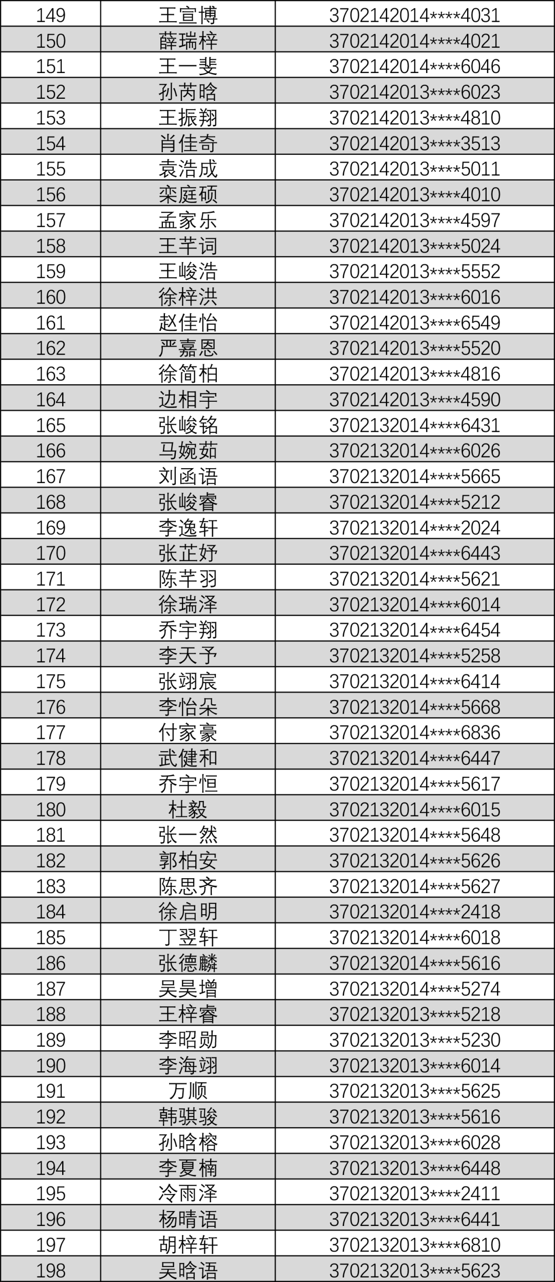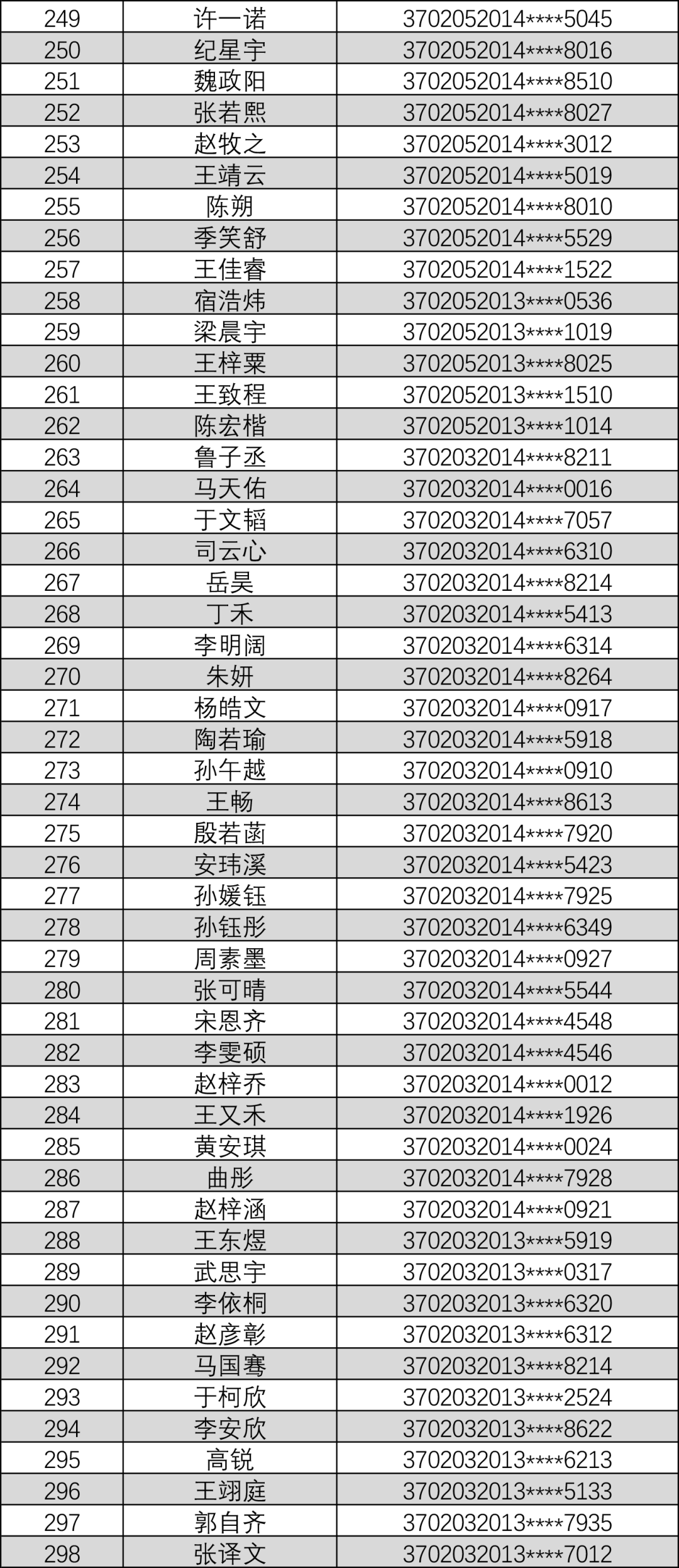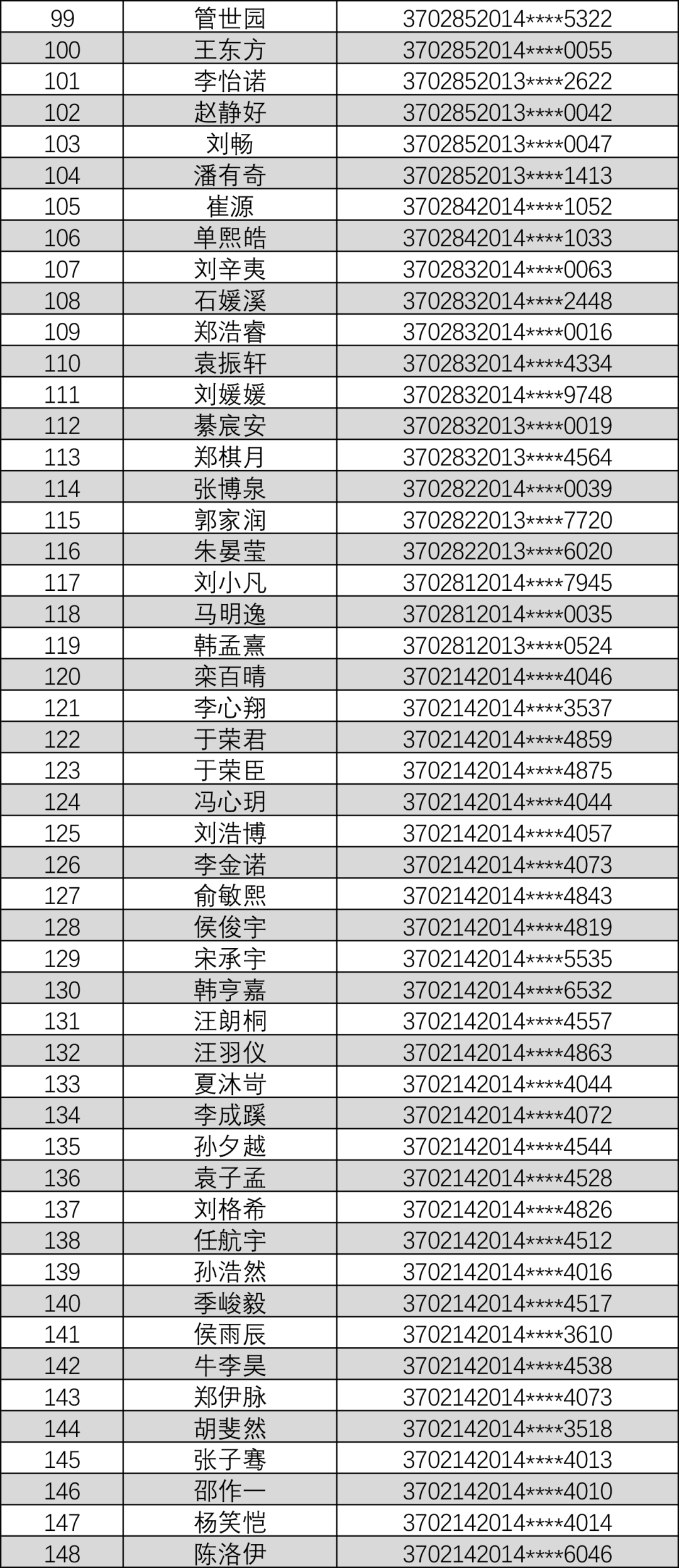 根据《青岛市教育局关于做好2020年全市义务教育学校招生入学工作的通知》、《必威官方微博官网2020年一年级招生简章》的相关规定,对2020年一年级报名必威官方微博官网的人数及学位数予以公示:经过网上报名及现场确认,总报名人数为388人。必威官方微博官网2020年一年级计划招收48人,将全部在388名报名学生中,通过电脑派位形式录取。报名名单详见下表。
