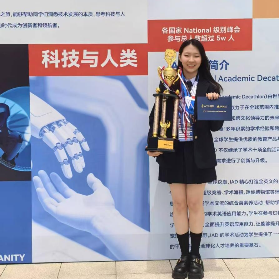 回望IAD全球赛的旅程,我心中充满感恩。这场比赛让我真正理解了团队的力量——从开幕式上各国旗帜飘扬的震撼,到备战时老师们的倾心相助,都让我更有底气踏上国际征程。特别感谢Mr. S和Terry老师。Mr. S用四节课让演讲变得生动有趣,一次次练习帮我从零散走向自信;Terry老师不仅深入讲解文学与演讲技巧,更总是在我们低落时给予能量,让我们保持状态。备赛期间,我们一起打磨海报、分享笔记、深夜讨论,这种紧密的协作让我体会到真正的参与感。比赛固然困难重重,但也让我学会高效沟通、勇敢社交,甚至结识了来自世界各地的朋友。IAD于我,不止是奖项,更是一次深刻的成长。它让我明白:只要敢于开始、坚持到底,就没有遥不可及的远方。未来或许如同迷雾森林,但勇气与好奇,会带我们走向更远的地方。