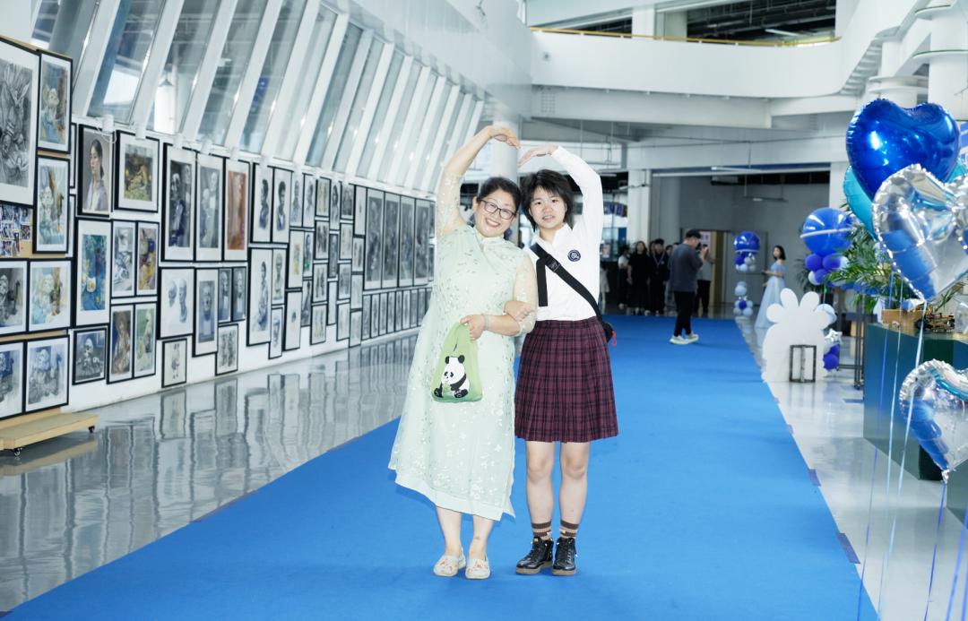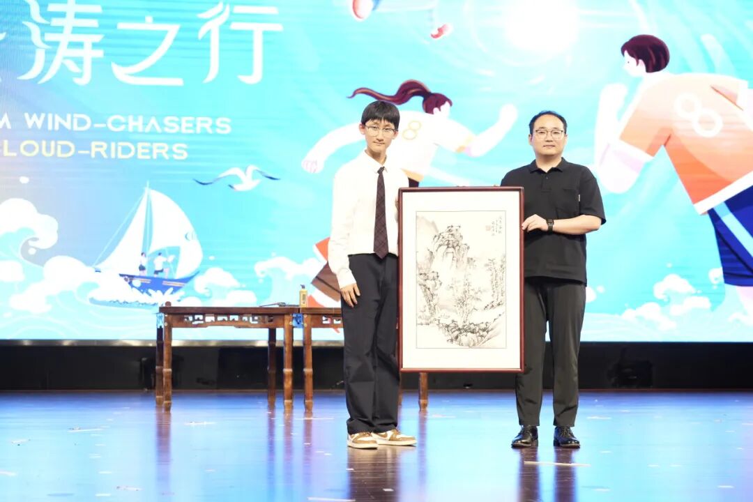 两位同学以笔寄情,将饱含敬意的书法作品郑重赠予高中部和国际部。赠予国际部的“海纳百川”四字,笔锋苍劲洒脱,寓意着“容得下百川激荡,才当得起万方天地”;赠予高中部的“韫玉怀珠”,代表着“今日怀珠韫玉,他日必绽光华”。此外,殷楷淇同学为初中部赠送了绘画作品,为这份情谊添就绚丽一笔。