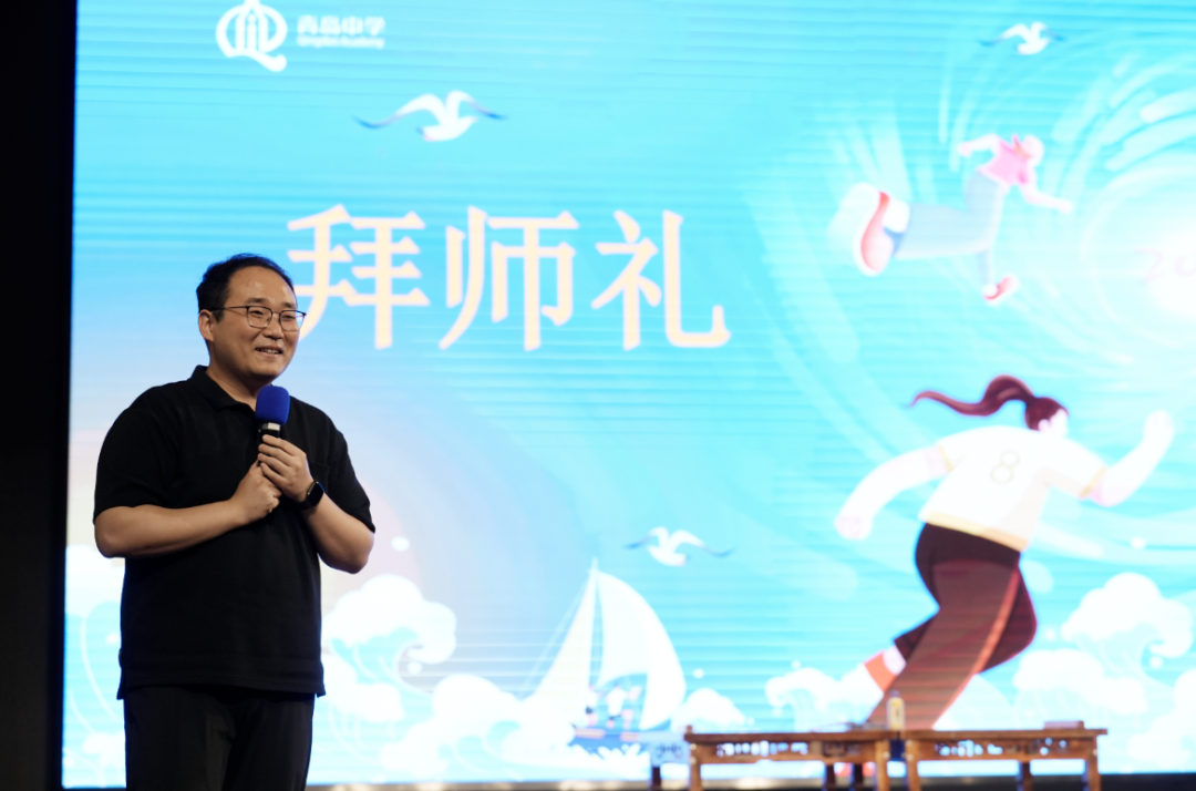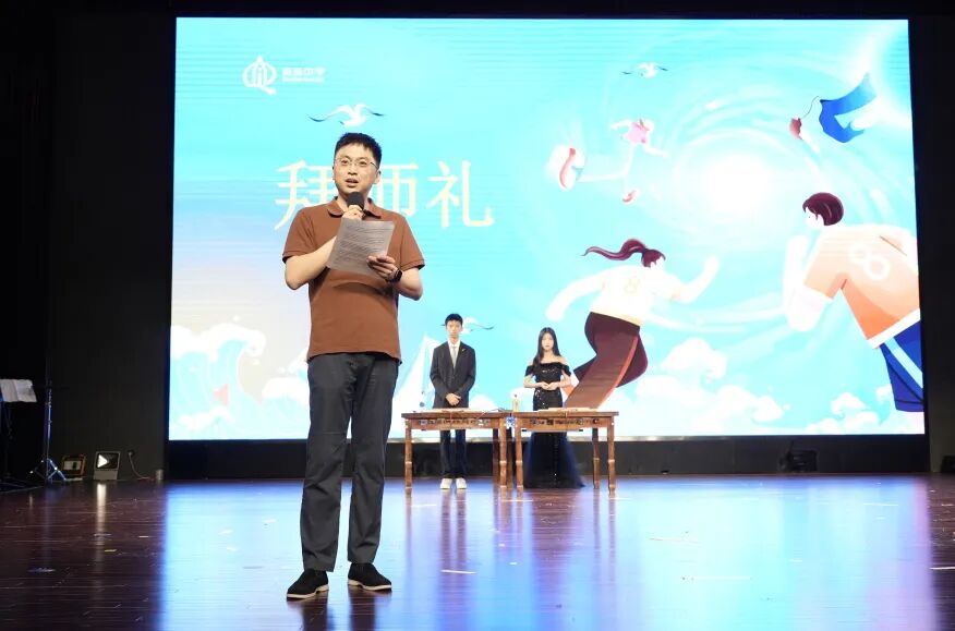 庄重而感人的“拜师礼”环节将典礼推向高潮。学子们以传统礼仪,向高中部与国际部老师代表行拜师礼。深深的一躬,既是对港湾最沉甸的谢意,亦是对未来最虔诚的启程之礼。