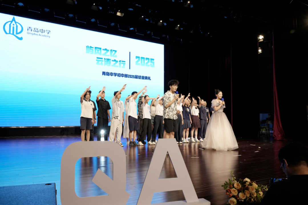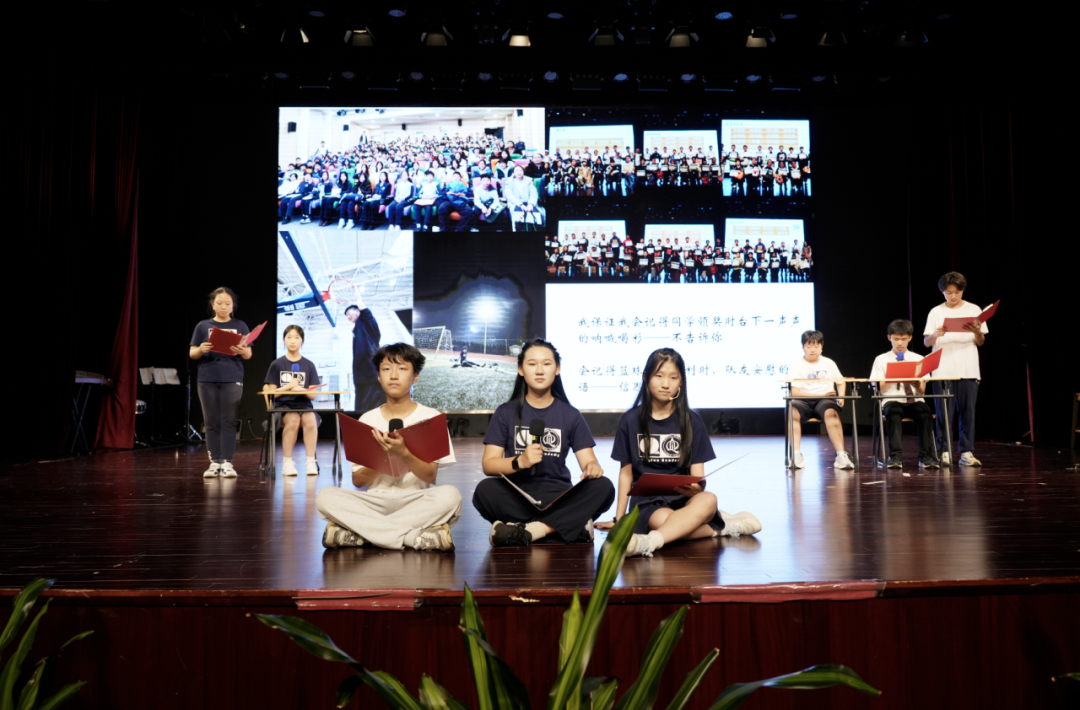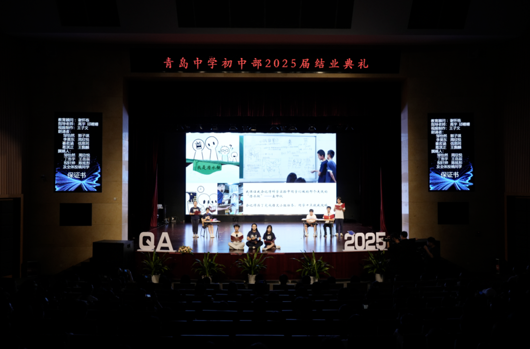 屿岸拾贝,同学们都情潮汹涌。动人的歌声诉说着对老师、美好时光的眷恋;创意十足的影子戏,用独特的光影艺术,将三年间的珍贵片段娓娓道来,充满想象力与温情;同学们的情景剧《我保证》,真挚讲述三年来的欢笑与泪水——那些课间的打闹、考场的拼搏、老师的叮咛,台上每句话落下,台下就泛起一片涟漪——我们红了眼眶,却又扬起嘴角。这是独属于我们的“屿风”记忆。