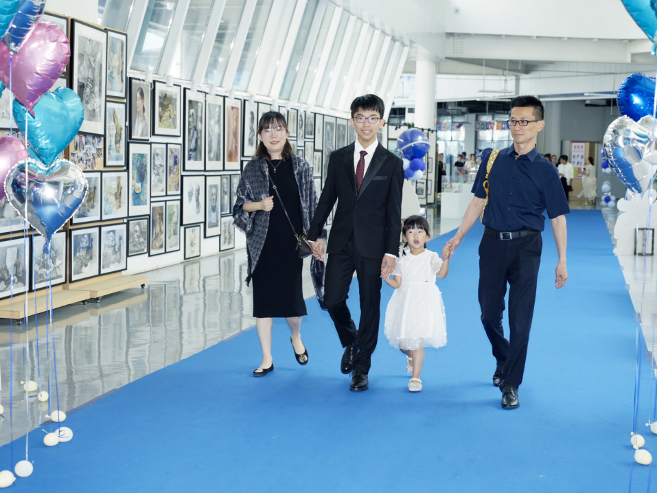 典礼伊始,同学们身着盛装,踏上象征荣耀与成长的红毯。每一步,都是在回溯初中三年的轨迹。背景大屏同步播放精心制作的初中回忆视频,一张张熟悉的笑脸,一幕幕动人的场景,瞬间将大家拉回那些共同奋斗、欢笑、成长的“屿上”岁月,暖意融融,笑声与感怀交织。