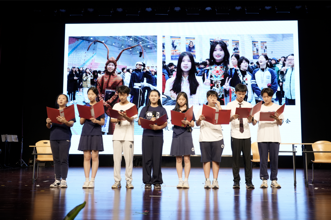 高中部主任与国际部主任分别讲话,为即将踏上新征程的学子们送上祝福与期许,希望“追风”二字在少年心中,化作一片值得跃马扬鞭的壮阔山海。最后,初中八年级主任于超老师带来了语重心长、饱含深情的临别赠言,希望同学们“从追风者到凌云者”,勇敢追梦。