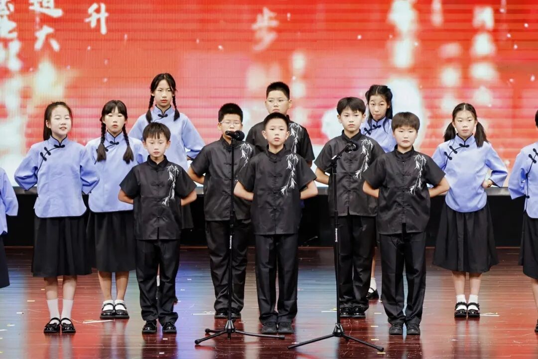 十岁的孩子,像春日里努力拔节的幼苗,带着对世界的好奇,试探着伸展枝叶。成长礼开场,孩子们就用一场“自我绽放”,拉开成长的序章。手指在乐器上跳跃,旋律里藏着初次登台的紧张与勇敢;裙摆飞扬间,是对“美”最初的感知与表达。稚嫩嗓音里,有对成长的懵懂追问;朗诵字句铿锵中,是与时光对话的郑重。从非洲鼓的节奏律动,到相声里的逗趣互动,每个节目,都是孩子与自我的深度对话——原来,我可以站上舞台,原来,我能绽放独属于自己的光,这是十岁送给自己最珍贵的成长礼物。